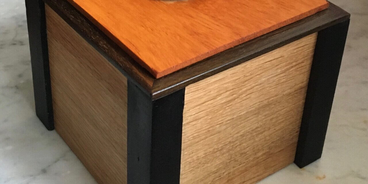 het houten voorwerp ontstaat uit het niets. Uit een verzameling van verschillende soorten plankjes groeit als het ware een kistje. En een tekening maken, werkt dan niet echt. Het is de fantasie of, zo je wilt, de creativiteit, die dus tot iets maakbaars komt. De onderkant en de bovenkant van het kistje vond ik in...